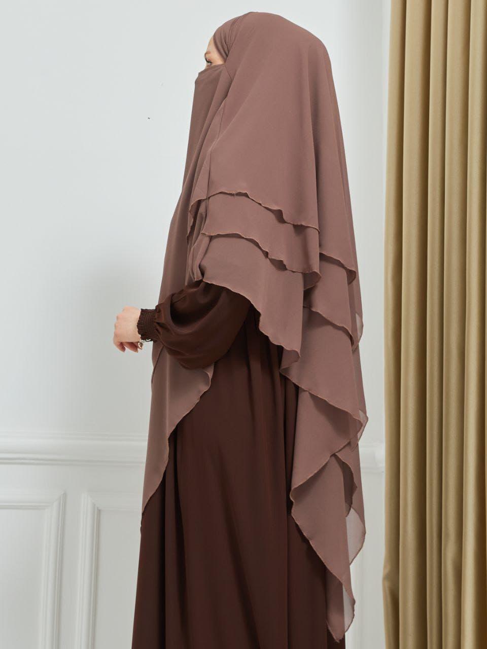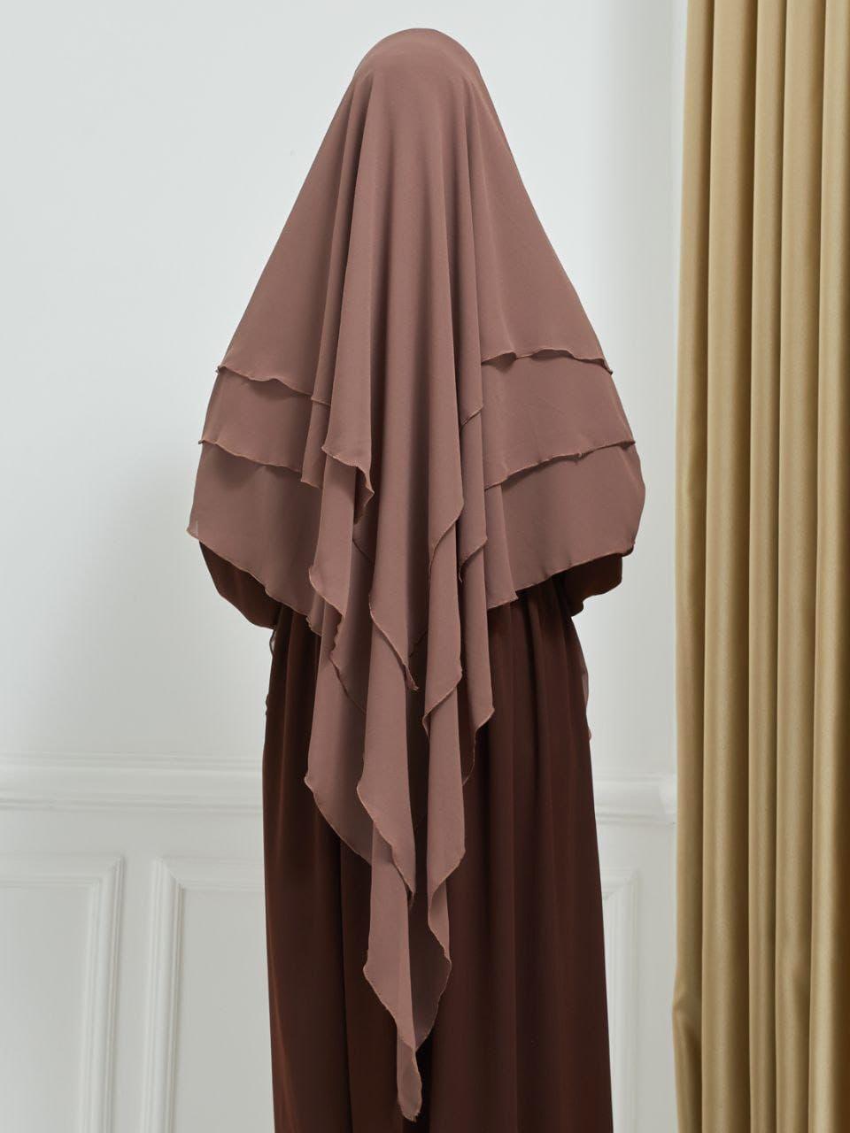 خمار طبقات للرأس بارد ومريح، واسع، طويل، لون نسكافيه،  يراعي الموضة العصرية. مناسب للخروج من المنزل بشكل عام.